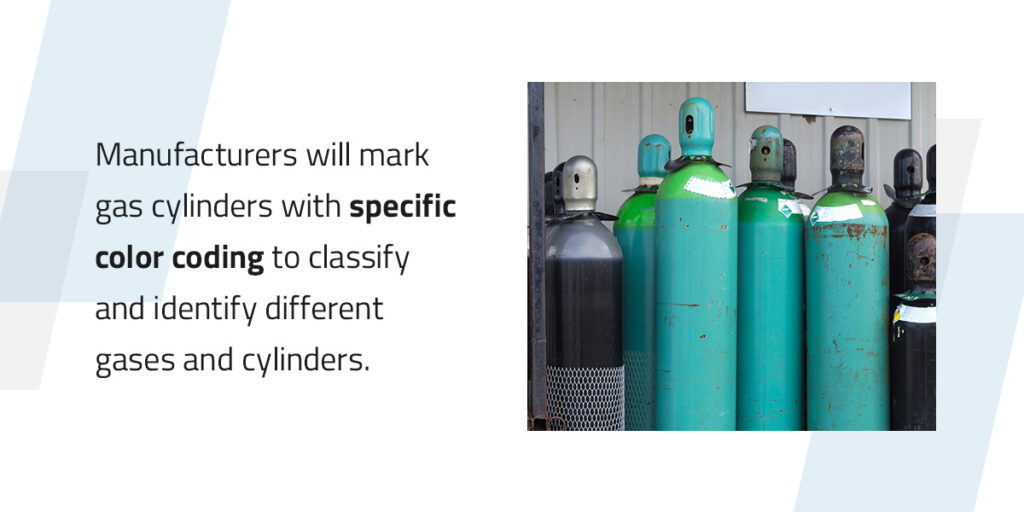 Gas cylinders are specialized equipment, so understanding the markings on cylinders is important for safety. Generally, manufacturers will mark gas cylinders with the following information: