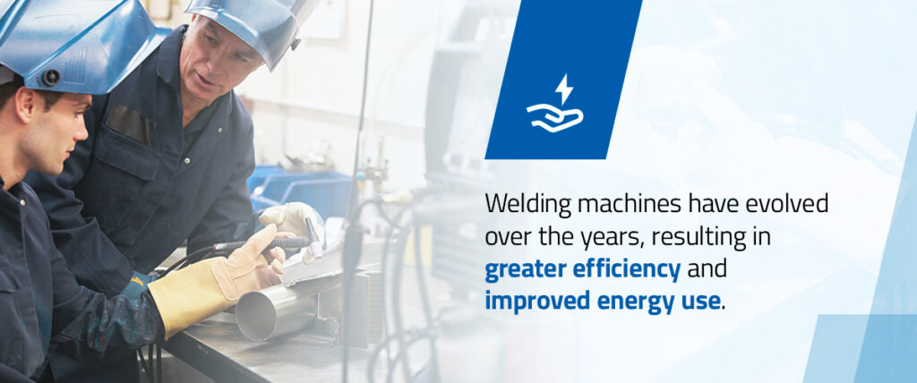 Welding machines have evolved over the years, resulting in greater efficiency and improved energy use. They also offer more features. For example, new welders have pulsing capabilities that ensure increased heat control and superior weld quality. Businesses with modern machines also benefit from better safety features, data management systems and digital controls.