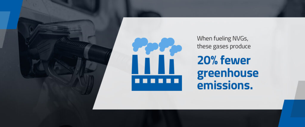 Natural gas is one of the cleanest fuels available, making NGVs better for the environment than diesel and gasoline vehicles. When fueling NVGs, these gases produce 20% fewer greenhouse emissions. Additionally, NVGs can’t release evaporative emissions since CNG fuel systems are sealed.