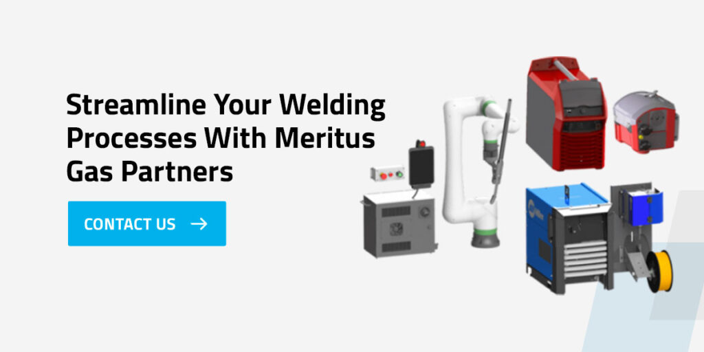 Understanding cobots and the benefits they offer makes cobot integration much easier in your workplace. At Meritus Gas Partners, we partner with numerous suppliers of cobot solutions, giving you access to an extensive selection of the tools you need to complete welding and other processes.