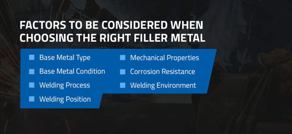 The filler metal should match the welding process and the types of welding tools you plan to use. Metal inert gas welding, also known as gas metal arc welding, and tungsten inert gas welding, also known as gas tungsten arc welding, are two common welding processes that require varying fillers.