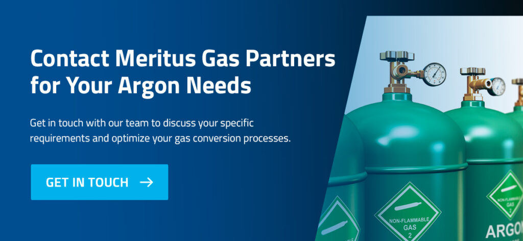 Meritus Gas Partners offers a wide range of industrial gas solutions, including reliable argon gas supply and expert consultation. Get in touch with our team to discuss your specific requirements and optimize your gas conversion processes with the support of our experienced professionals.