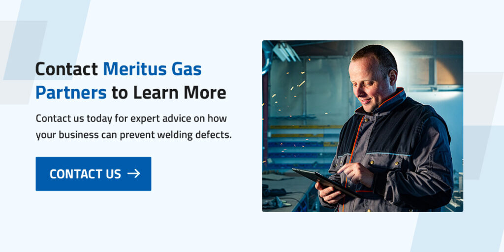 Meritus Gas Partners provides only the best quality gas and materials through our comprehensive network of distributors. Contact us today for expert advice on how your business can prevent welding defects.