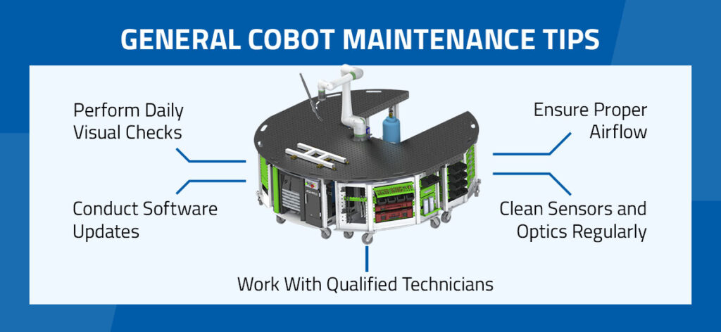 Regularly conducting preventative maintenance will help you avoid issues that can affect the cobot’s performance. Specifically, preventative maintenance can address the following issues: