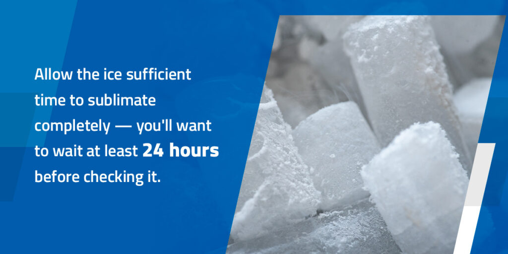 Having a safe dry ice disposal method is just as important as using safe handling practices. Dry ice will sublimate when you discard it, so you want to have a proper space for it to do so safely, such as an inaccessible outdoor area. You can take these steps to keep everyone in the vicinity safe: