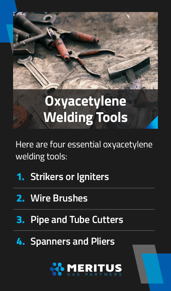 Here are four pieces of equipment you need for oxyacetylene welding: