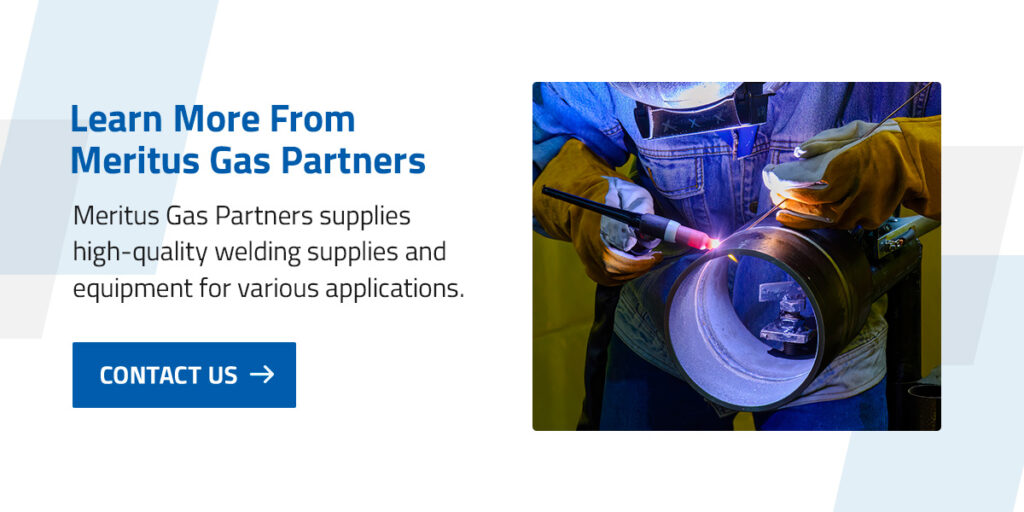 Meritus Gas Partners supplies high-quality welding supplies and equipment for various applications. We help customers stock inventory according to their needs and hold it locally for them. We also set up and repair equipment, giving you the convenience and time to focus on other essential parts of your welding process. We partner with top organizations to bring you the best products and services. Contact us now to learn more.