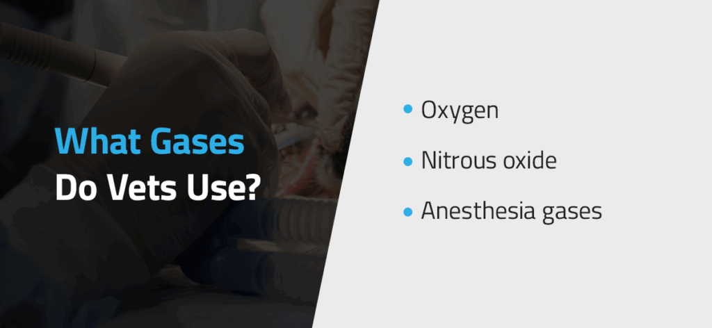 Veterinarians use oxygen, nitrous oxide and anesthesia gases. Animals are often stressed or scared when they’re ill and in unfamiliar places, like the vet clinic. Veterinarians will use gases to make diagnosing and surgical procedures easier and more comfortable.