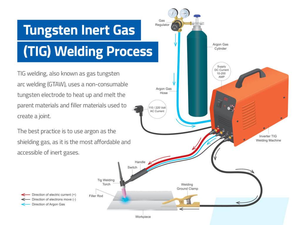 TIG welding, also known as gas tungsten arc welding (GTAW), uses a non-consumable tungsten electrode to heat up and melt the parent materials and filler materials used to create a joint.